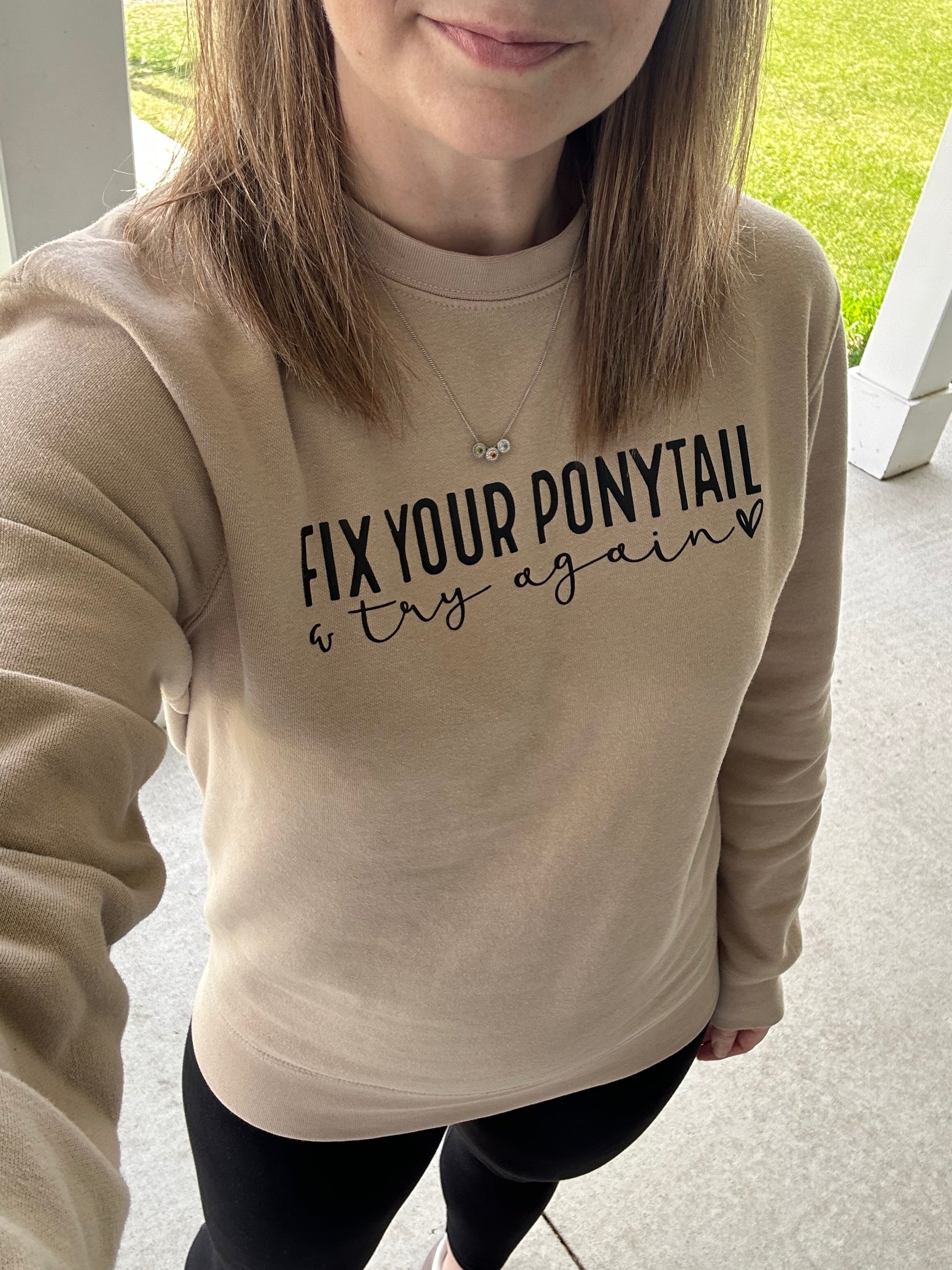 FIX YOUR PONYTAIL & TRY AGAIN ♥ - Adult Crewneck Sweatshirt